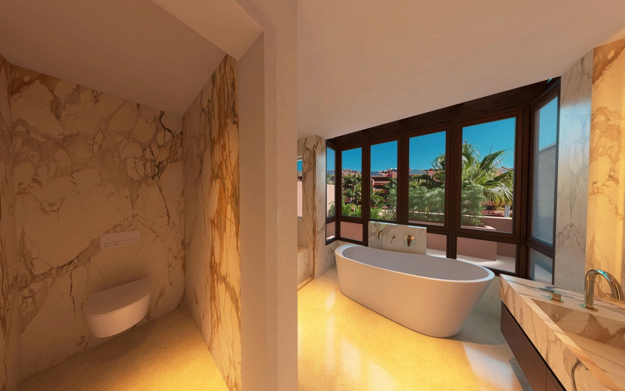 Nestled within the prestigious beachfront enclave of Torre Bermeja on Estepona’s sought-after New Golden Mile, this exceptional duplex penthouse blends timeless Andalusian charm with refined contemporary design. Representing a rare opportunity to own a luxury residence in one of the Costa del Sol’s most exclusive gated communities, the property embodies understated elegance and modern sophistication.