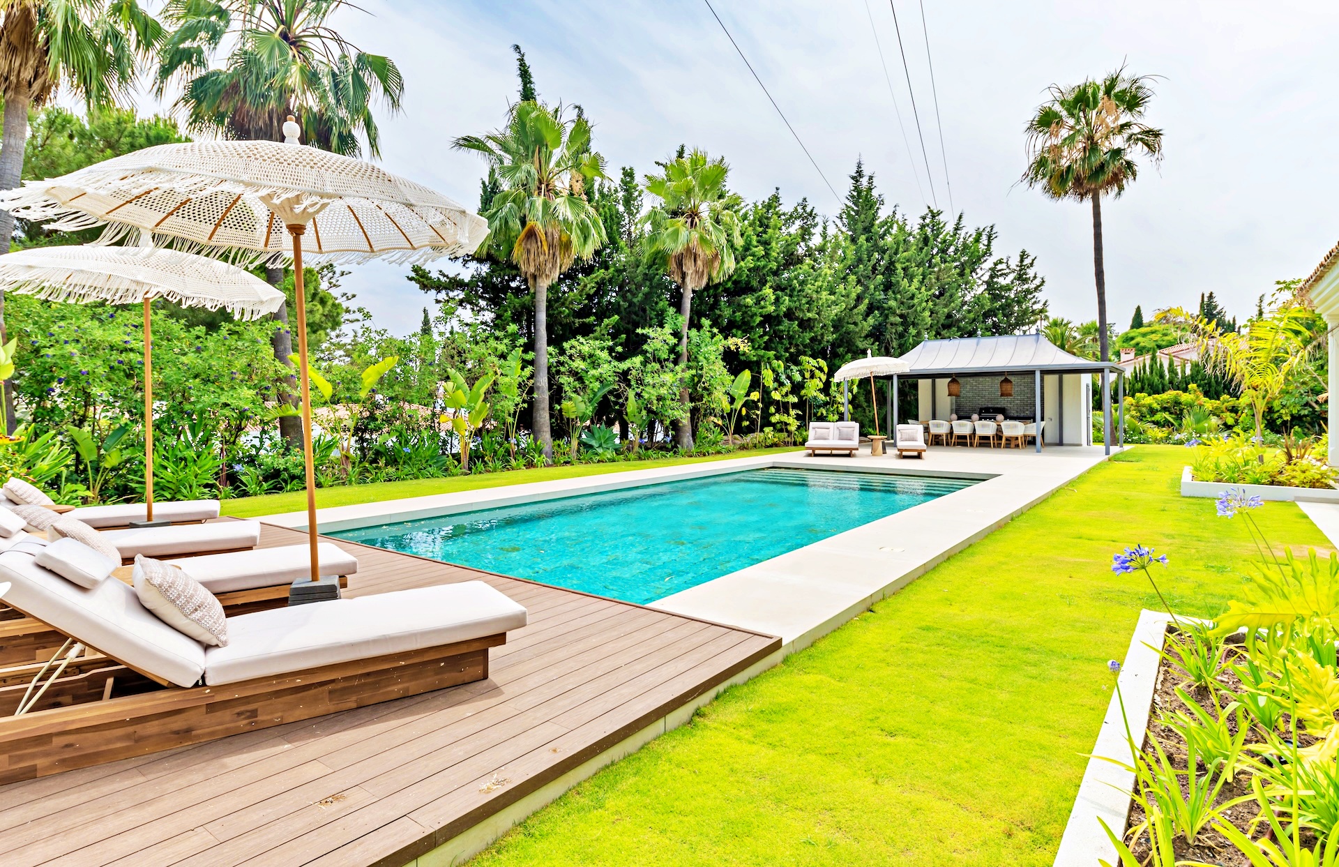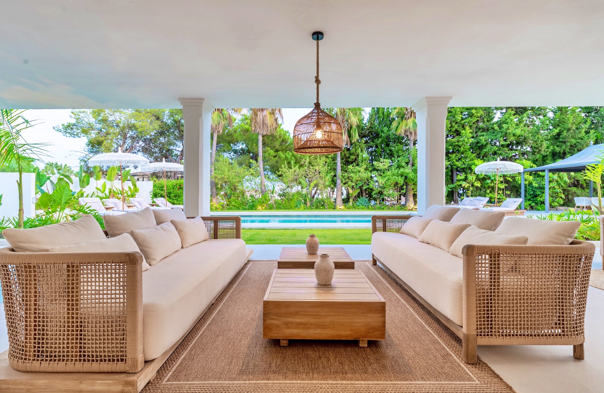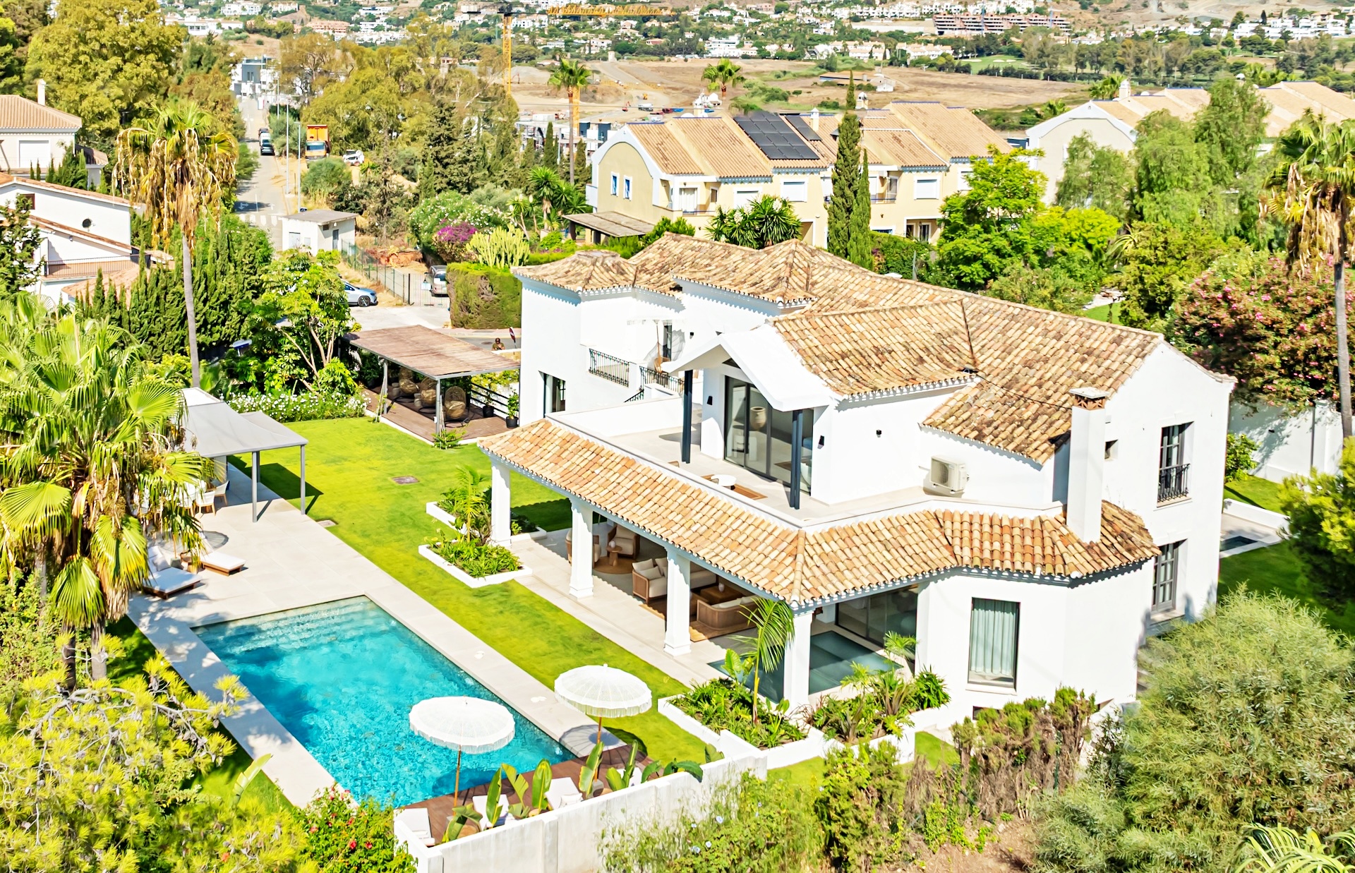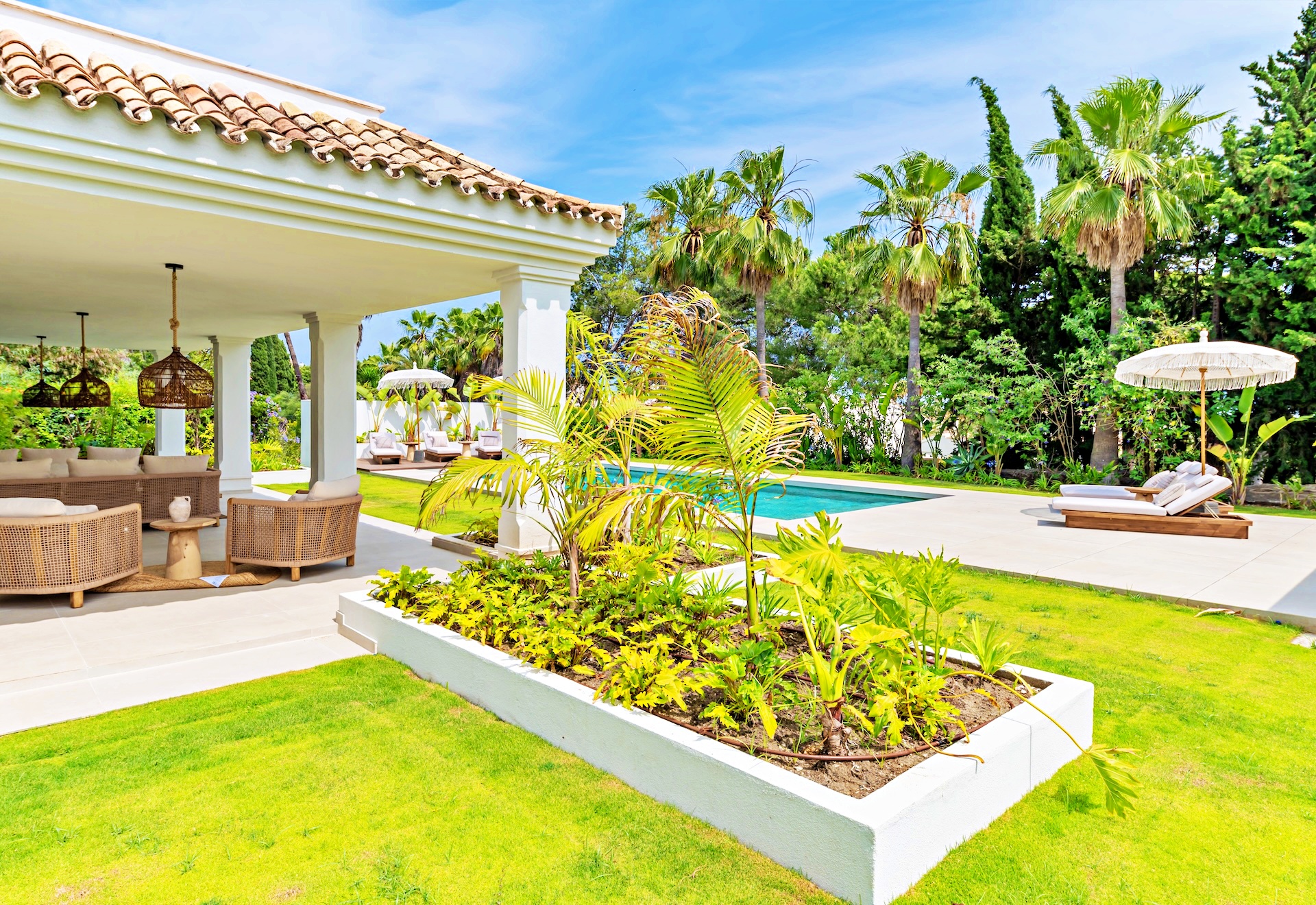 Just moments from the prestigious Atalaya Golf Club, this exquisite villa captures the essence of Andalusian charm while embracing the sophistication of modern living. Nestled amid mature trees and manicured gardens, the property offers a tranquil sanctuary where timeless architecture meets contemporary refinement.