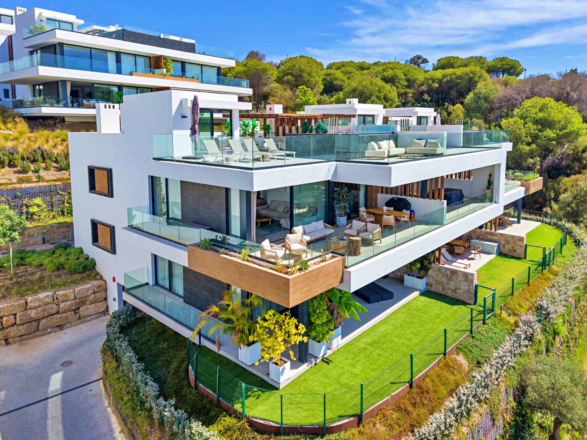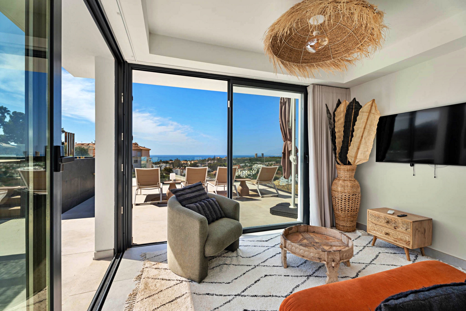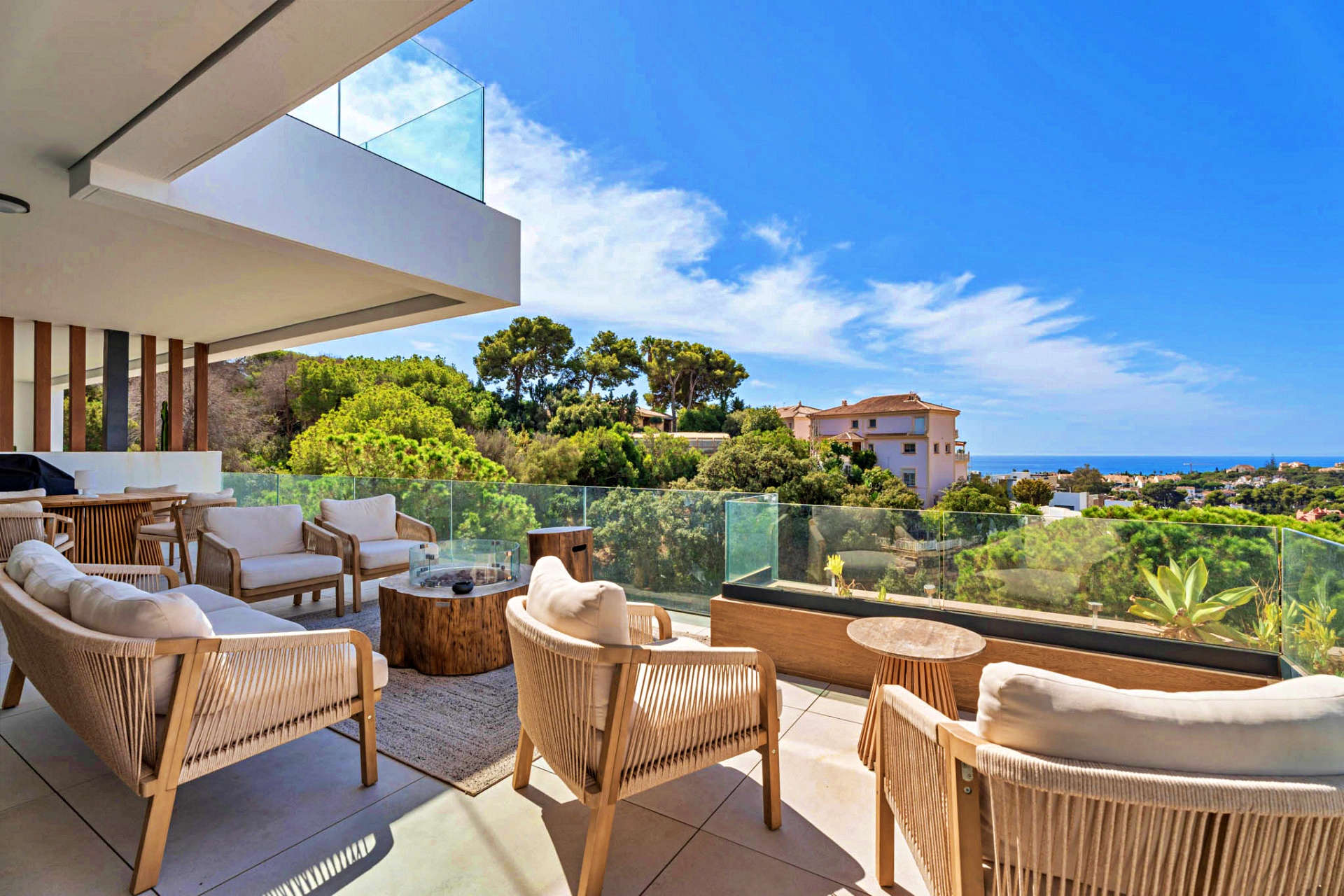 The property’s orientation ensures a perfect interplay of light and shade throughout the day, while the terraces and gardens create multiple zones for relaxation, dining, and entertaining — all framed by the timeless beauty of the Costa del Sol.