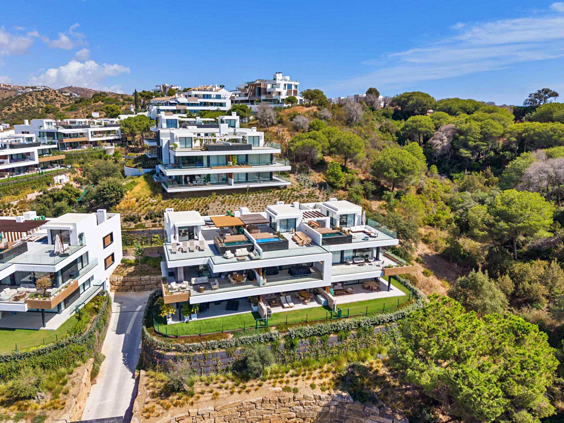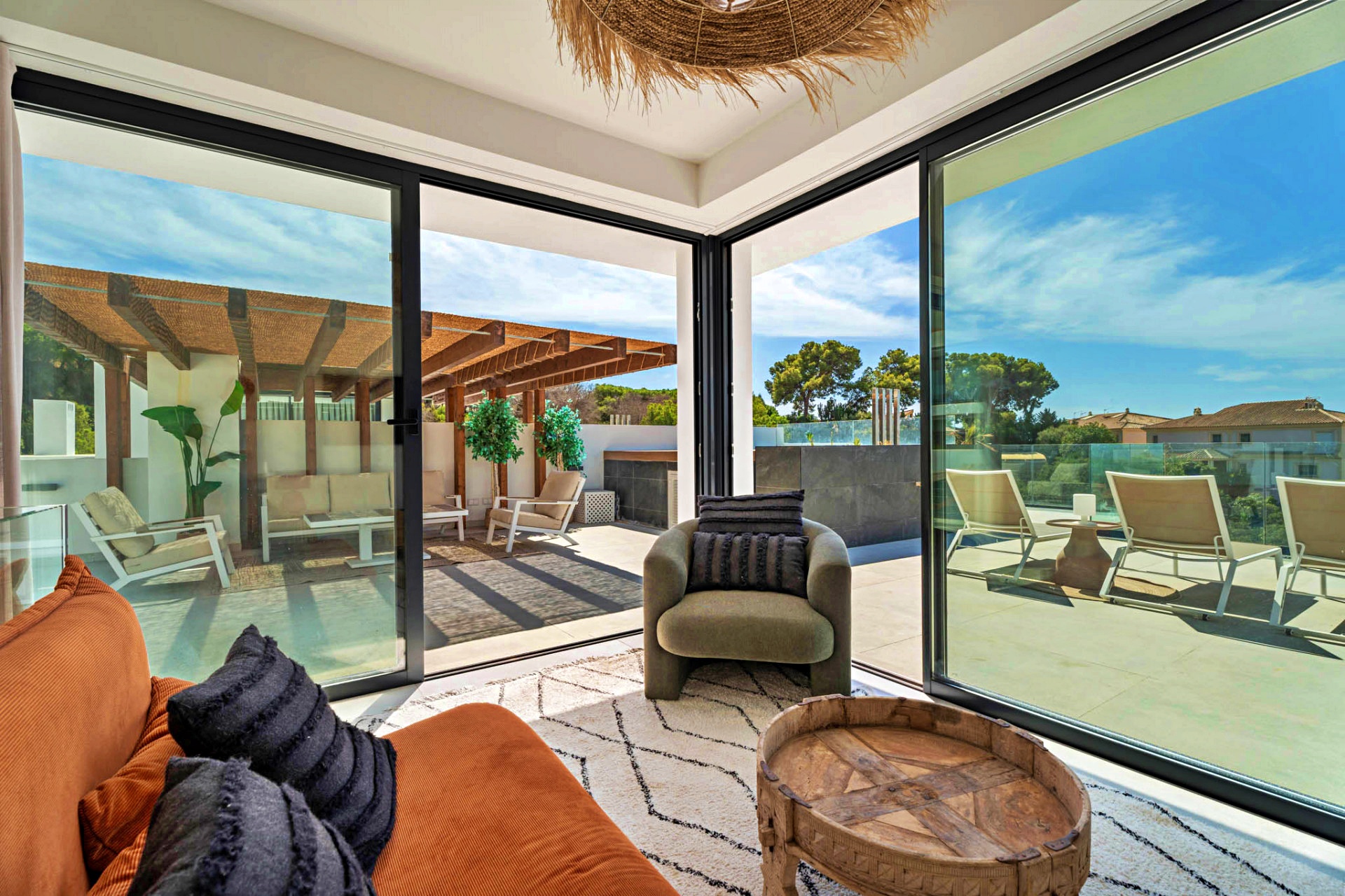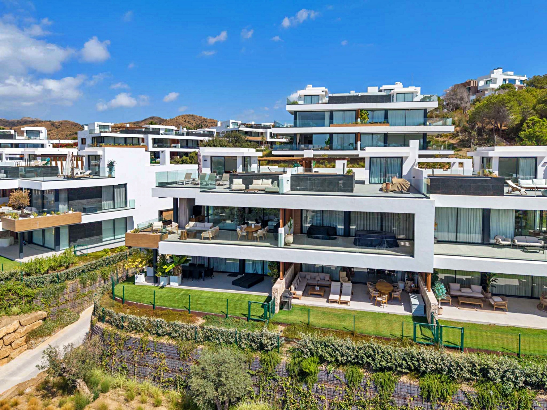The property’s orientation ensures a perfect interplay of light and shade throughout the day, while the terraces and gardens create multiple zones for relaxation, dining, and entertaining — all framed by the timeless beauty of the Costa del Sol.