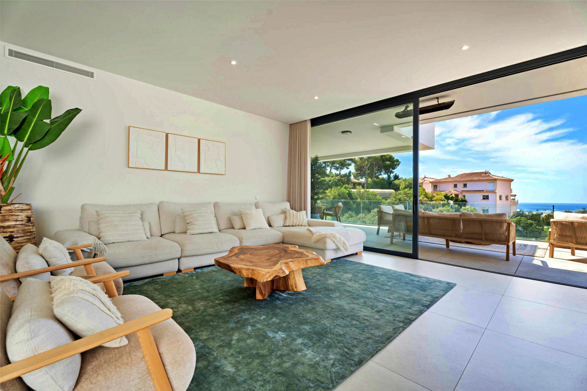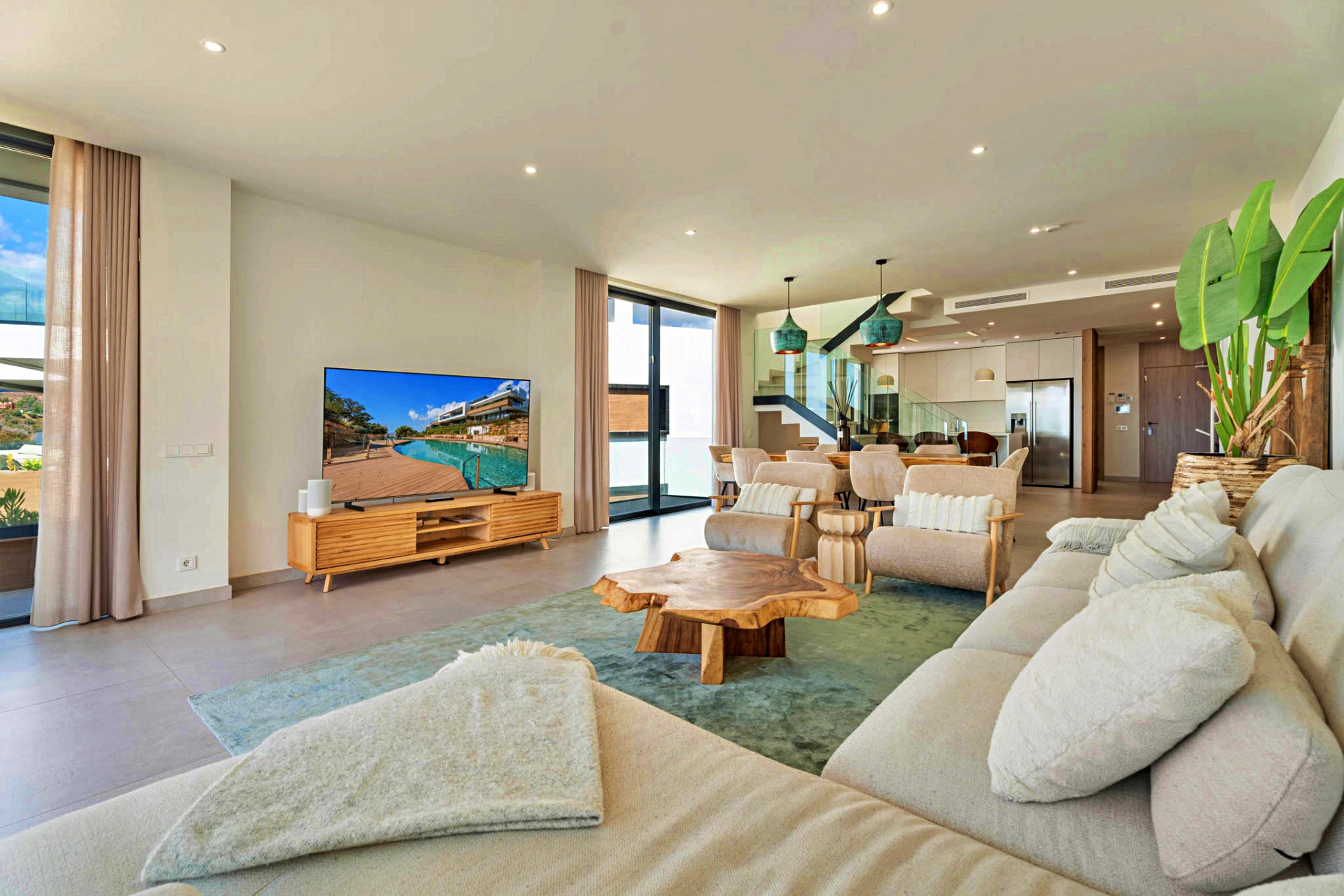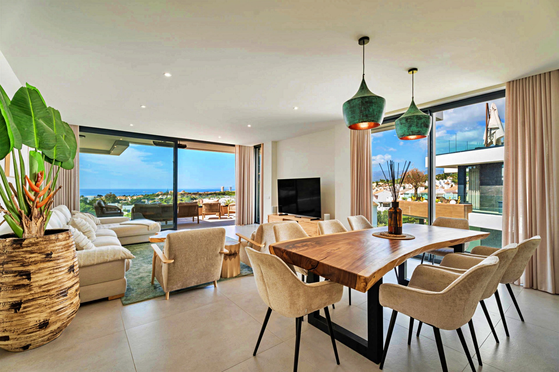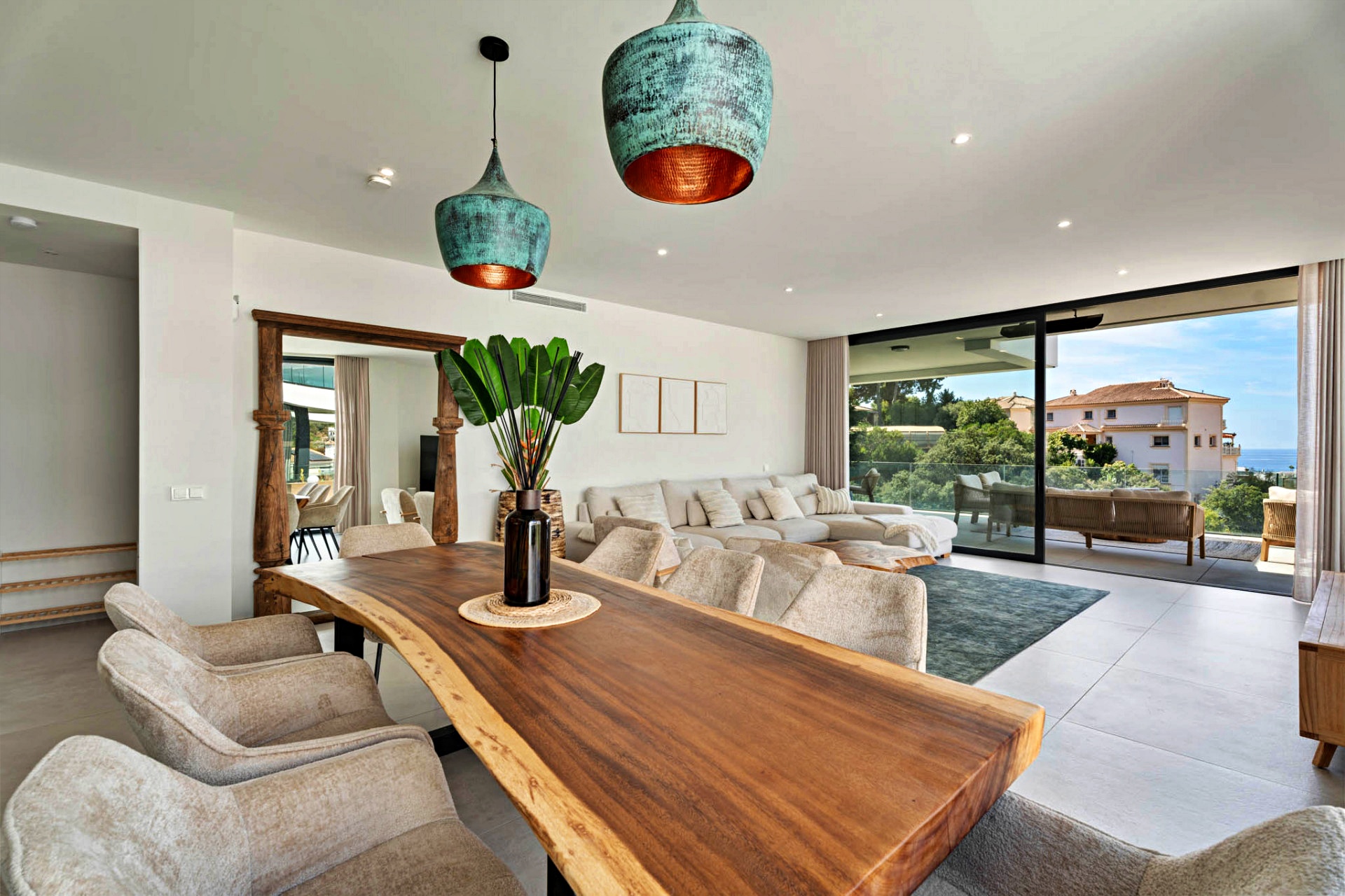 Open-plan living and dining area of nearly 50 m² with direct terrace access