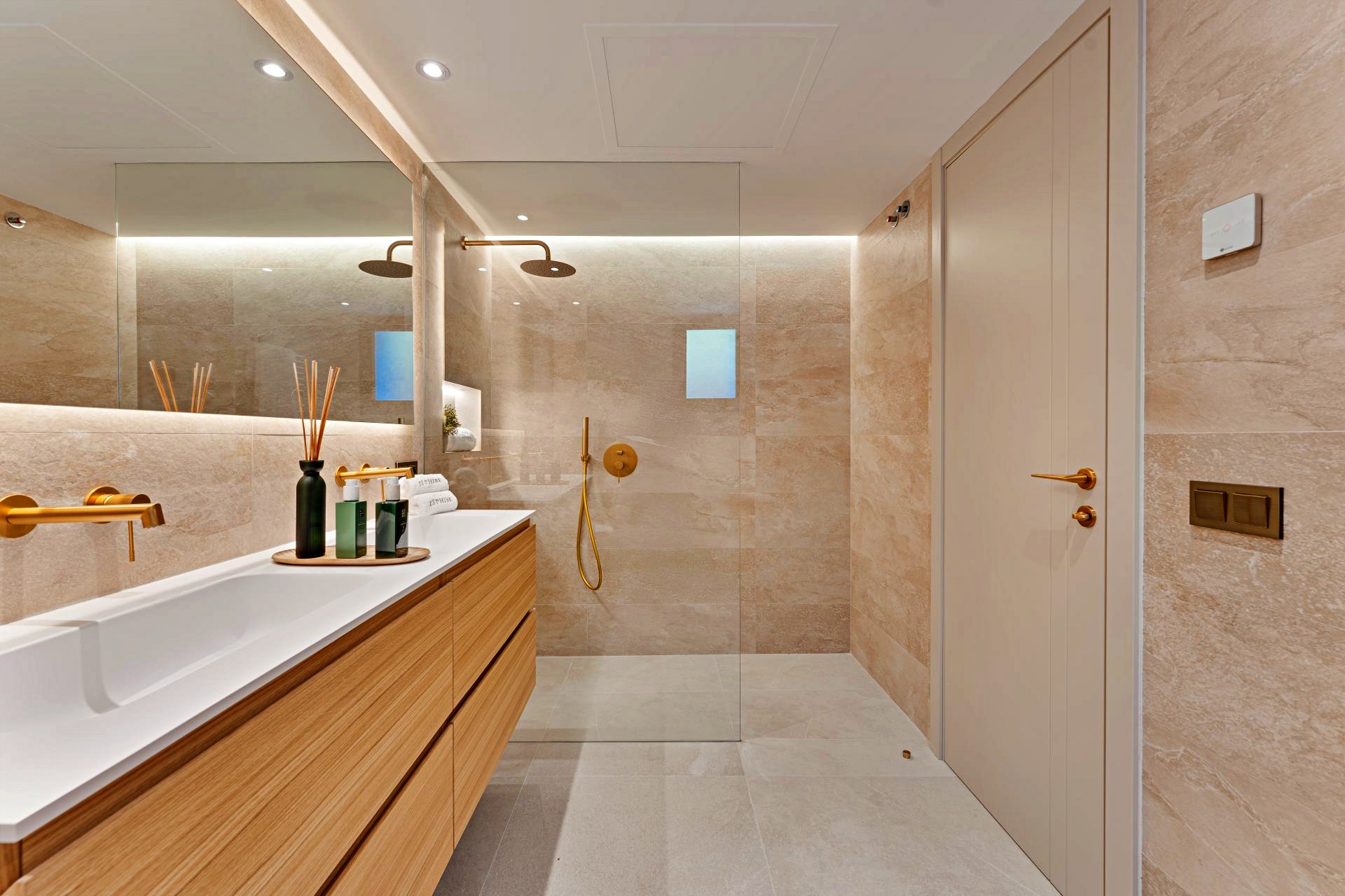 Luxury Interiors: Porcelain tiles, Bosch appliances, and open-plan living spaces
