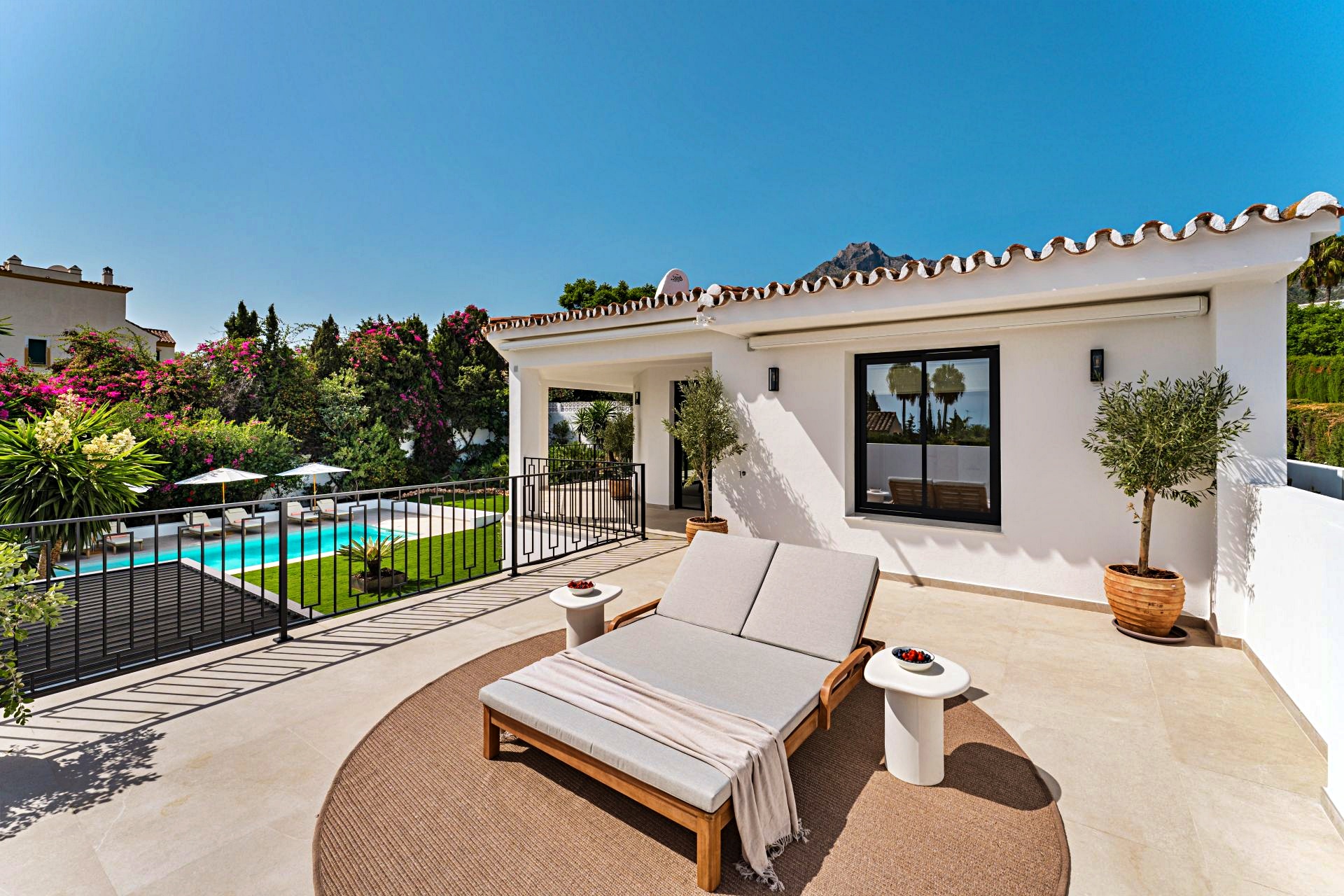 With its southwest-facing orientation, the villa basks in golden sunlight and captures sweeping panoramic views of the Mediterranean Sea. Multiple terraces invite relaxed alfresco dining, sunset cocktails, or lazy afternoons by the heated private pool. The lush landscaped gardens frame the property in natural beauty, while the iconic La Concha mountain stands proudly in the background — a daily reminder of Marbella’s magic.