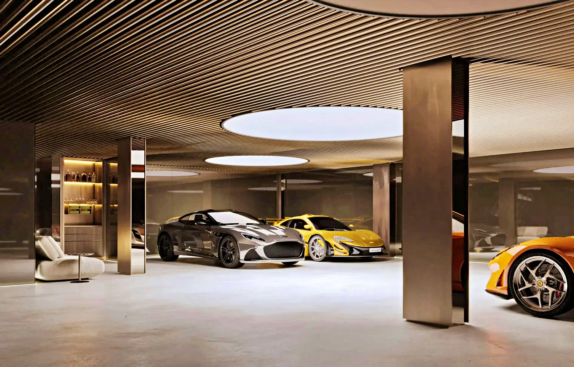 The -1 level is dedicated to wellness and leisure, featuring a spa, cinema room, gym, and children’s playroom—all bathed in natural light. The wellness area includes a 23.5-meter indoor pool, hammam, saunas, treatment rooms, and dedicated studios for yoga and Pilates.