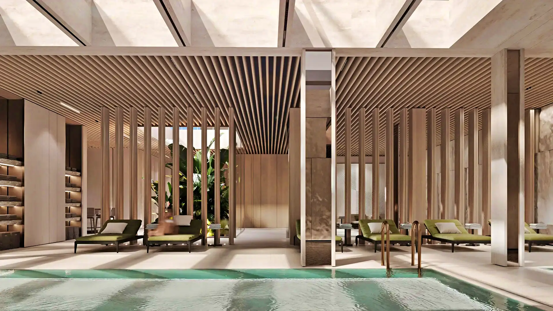 - 23.5-meter indoor pool, hammam, saunas, and treatment rooms