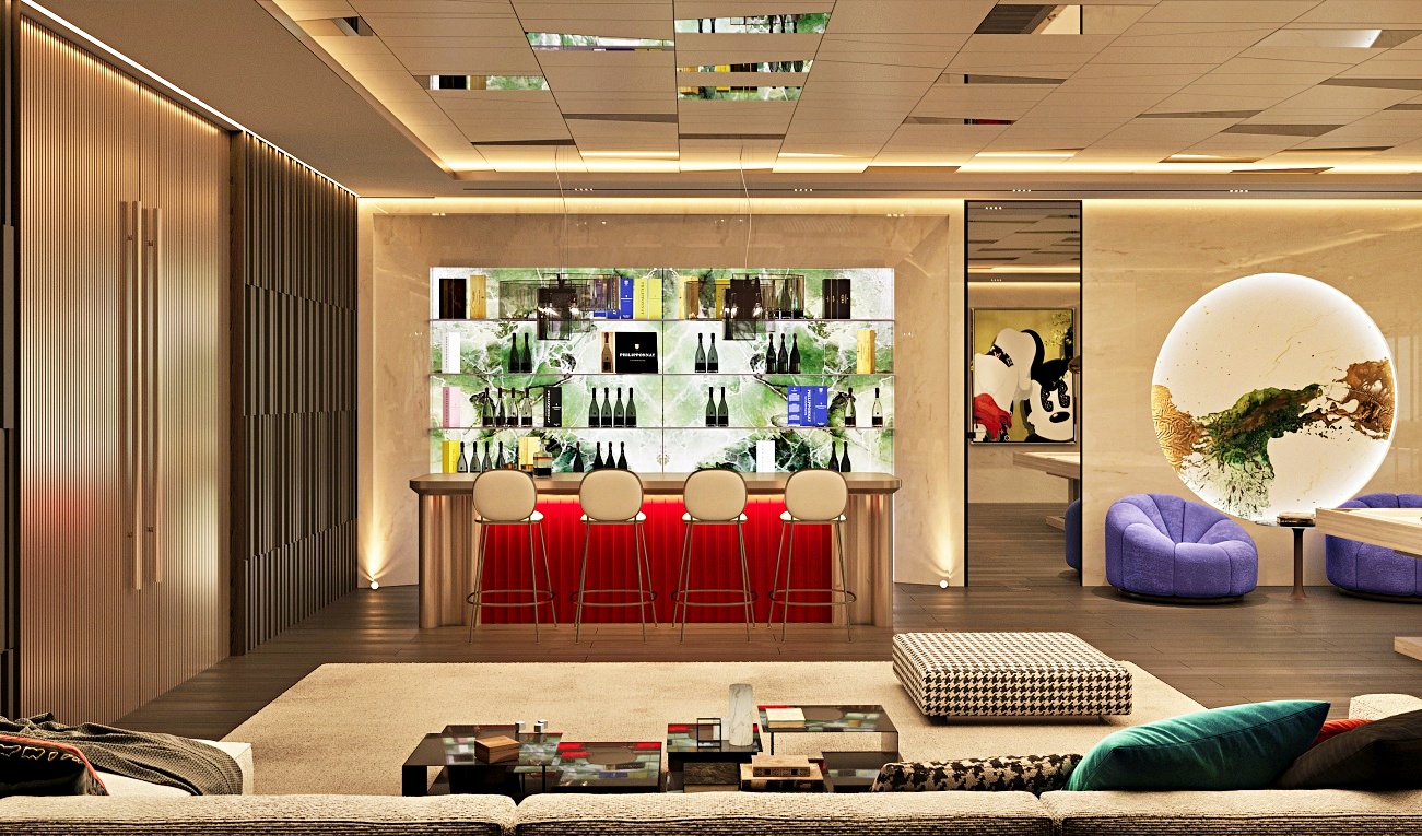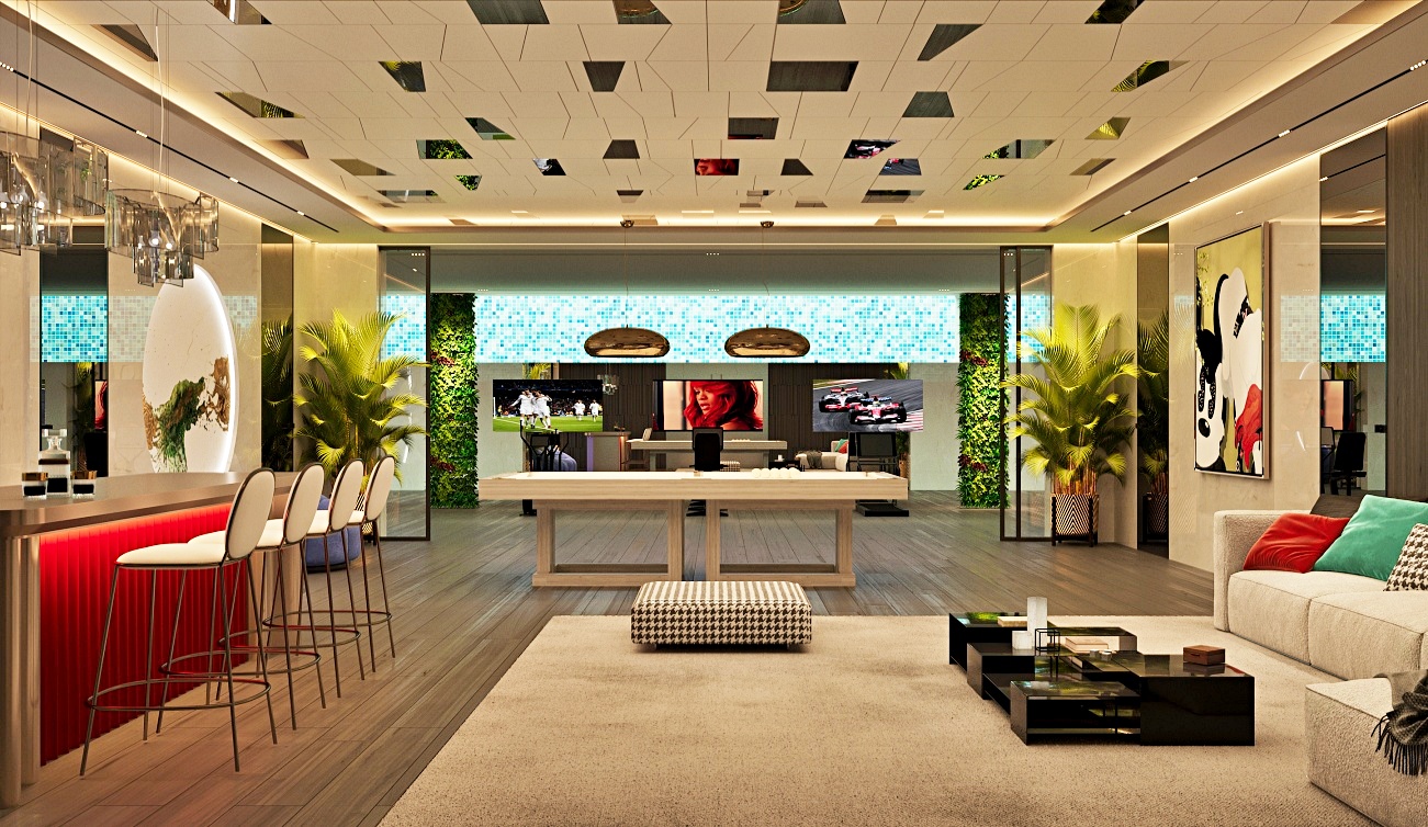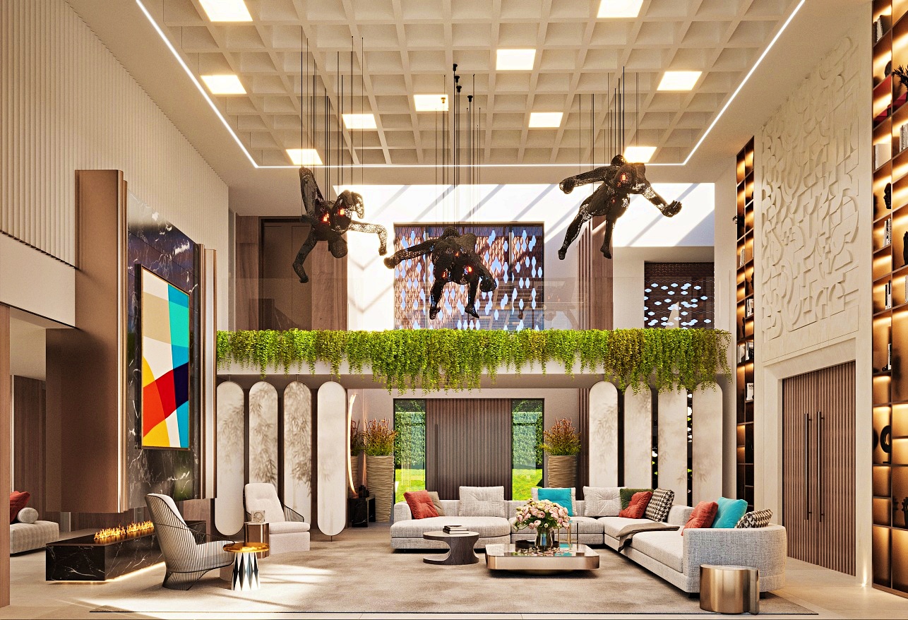 Contemporary architecture with open-plan design and floor-to-ceiling windows