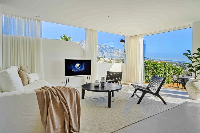 Set within the prestigious enclave of La Cerquilla in Nueva Andalucía, this exceptional apartment combines modern design with breathtaking panoramic views of the sea and surrounding mountains. Located in the sought-after Los Belvederes community, the residence offers a refined lifestyle in one of Marbella’s most exclusive residential areas, surrounded by world-class golf courses such as Los Naranjos, Aloha, and Las Brisas.