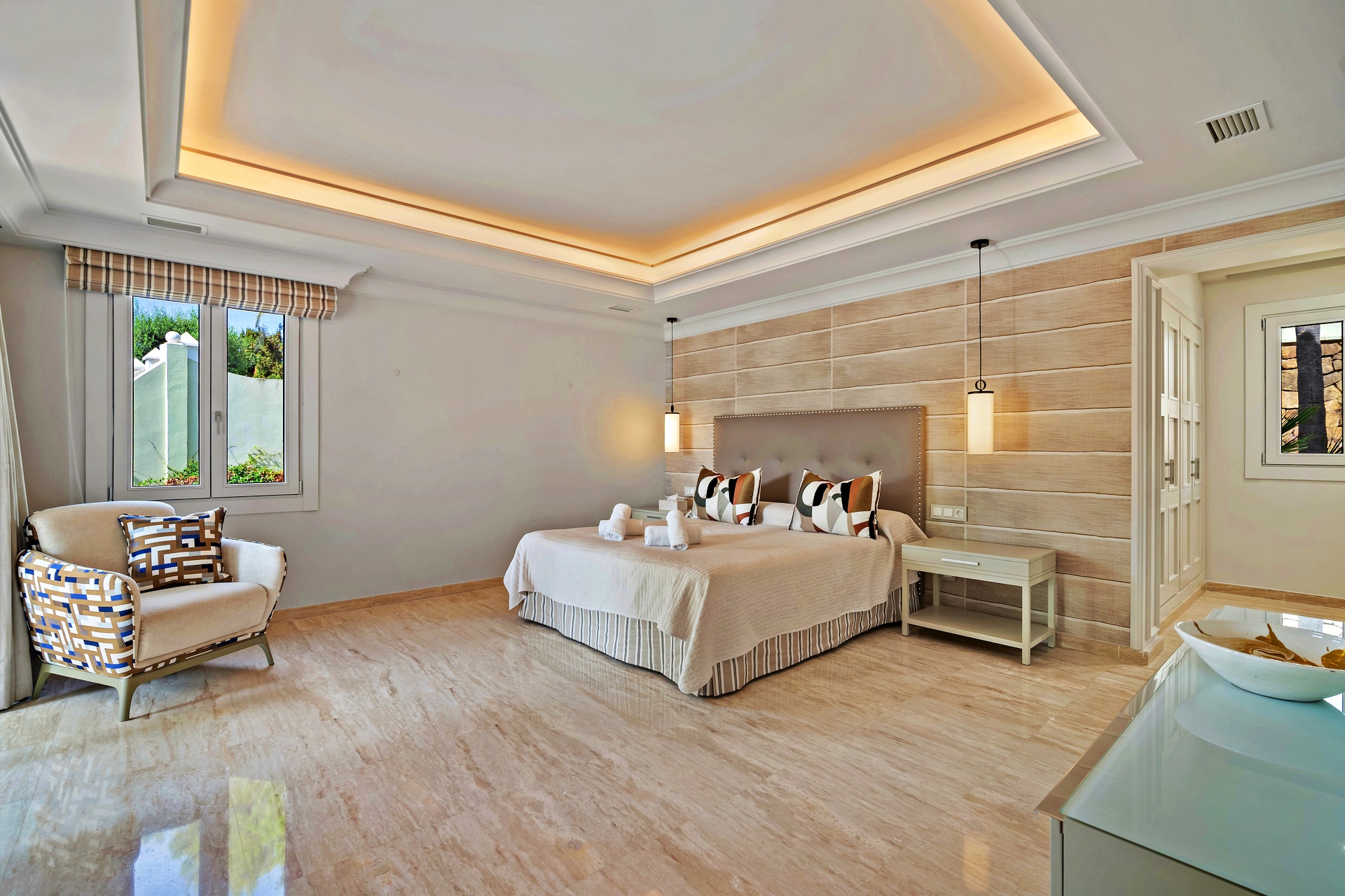 Main house with five bedrooms, including two master suites with terraces