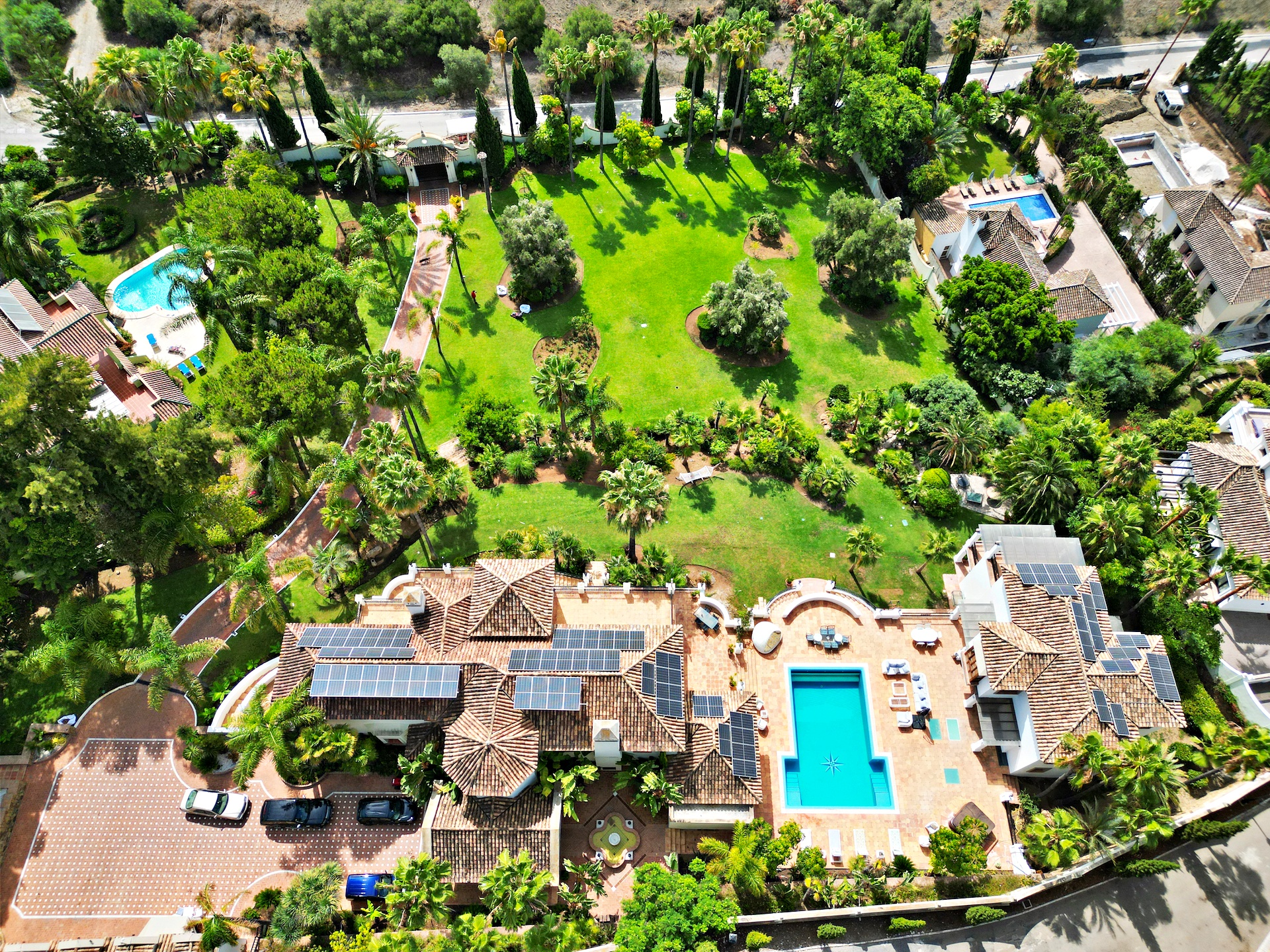 Rancho Paraiso is an elegant Mediterranean-style estate set in the serene and prestigious enclave of Paraiso Alto, Benahavis. This expansive property combines timeless architecture with modern comfort, offering a main residence, a newly renovated guest villa, and fully refurbished staff apartments. Designed for refined living, it is perfectly suited for a large family, a private retreat, or a boutique hospitality venture.