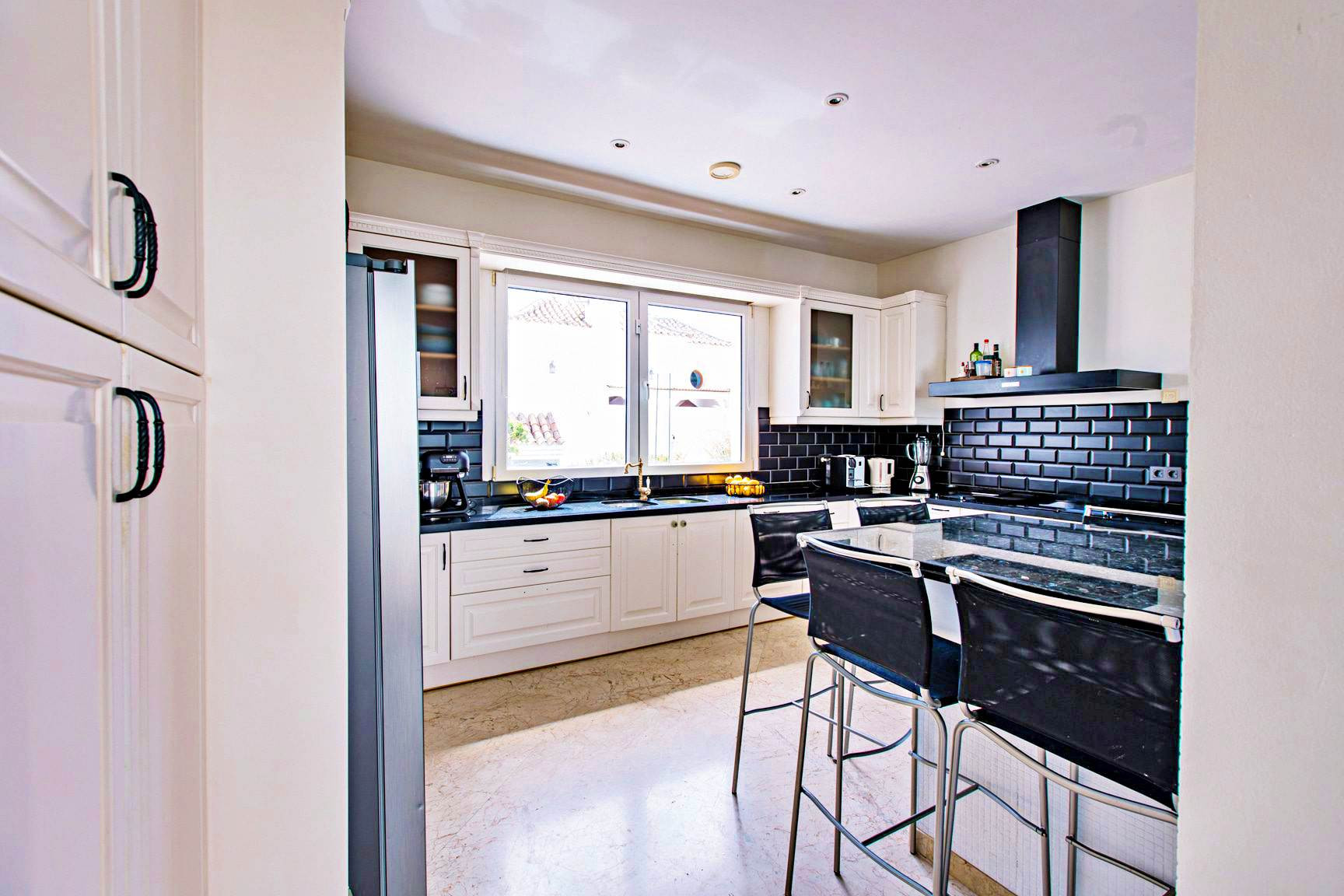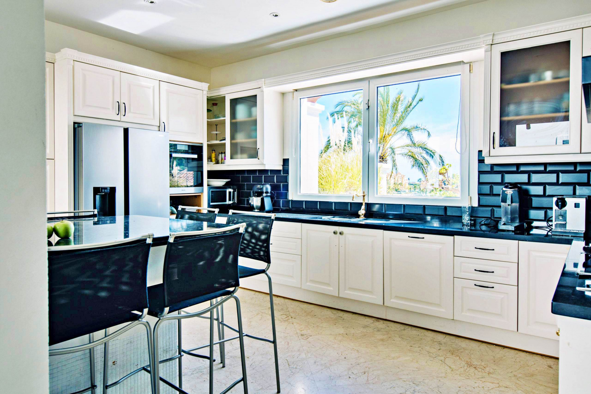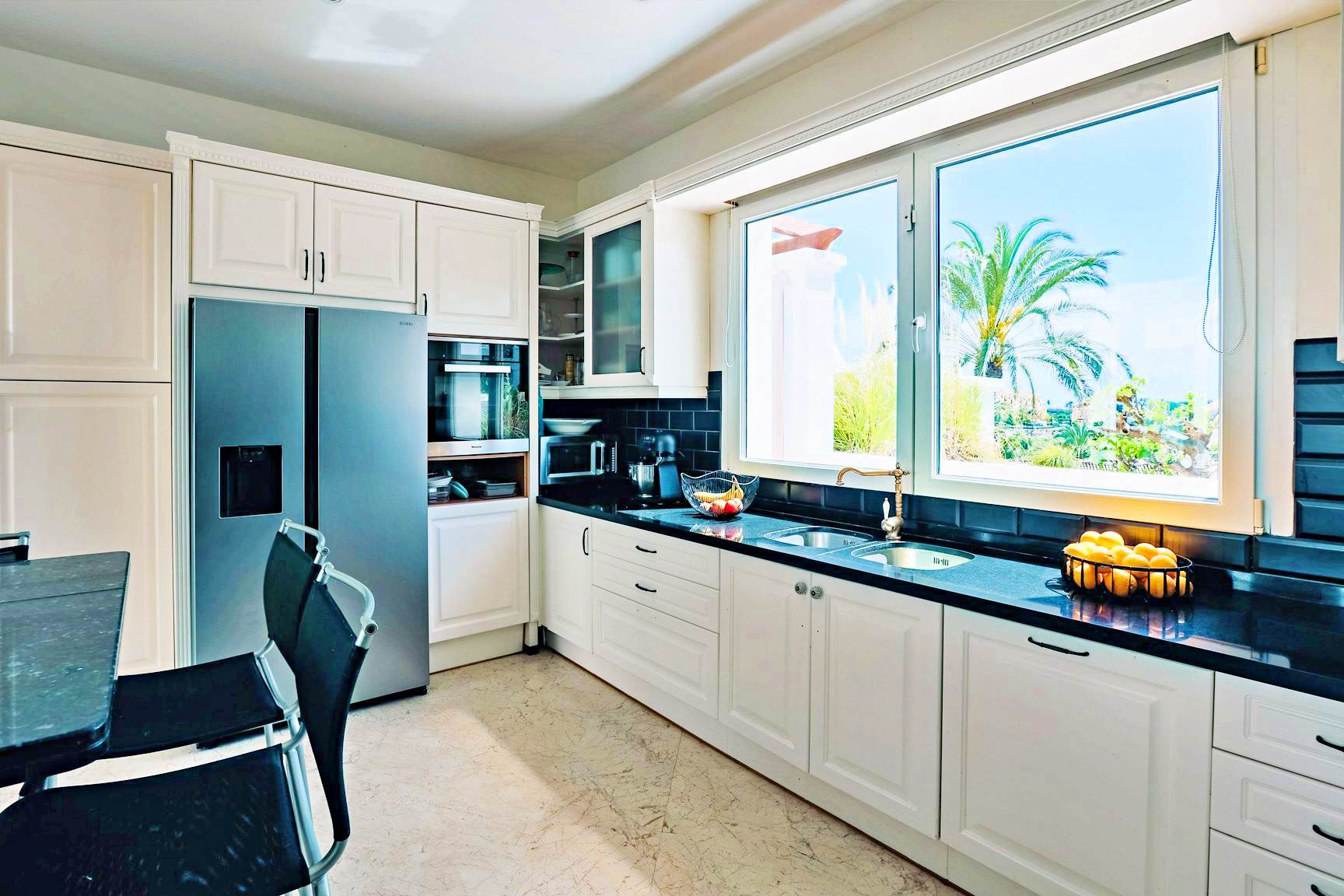 Villan har fyra badrum, en extra gästtoalett och en genomtänkt designad layout som inkluderar en separat gästlägenhet, idealisk för besökare eller utökad familj. Det fullt utrustade köket kompletteras med ett dedikerat matsal, ett tvättrum och ett förvaringsrum, catering till alla praktiska behov. Moderna bekvämligheter som luftkonditionering, satellit-TV, fiberoptiskt internet och Wi-Fi är sömlöst integrerade i hela fastigheten.