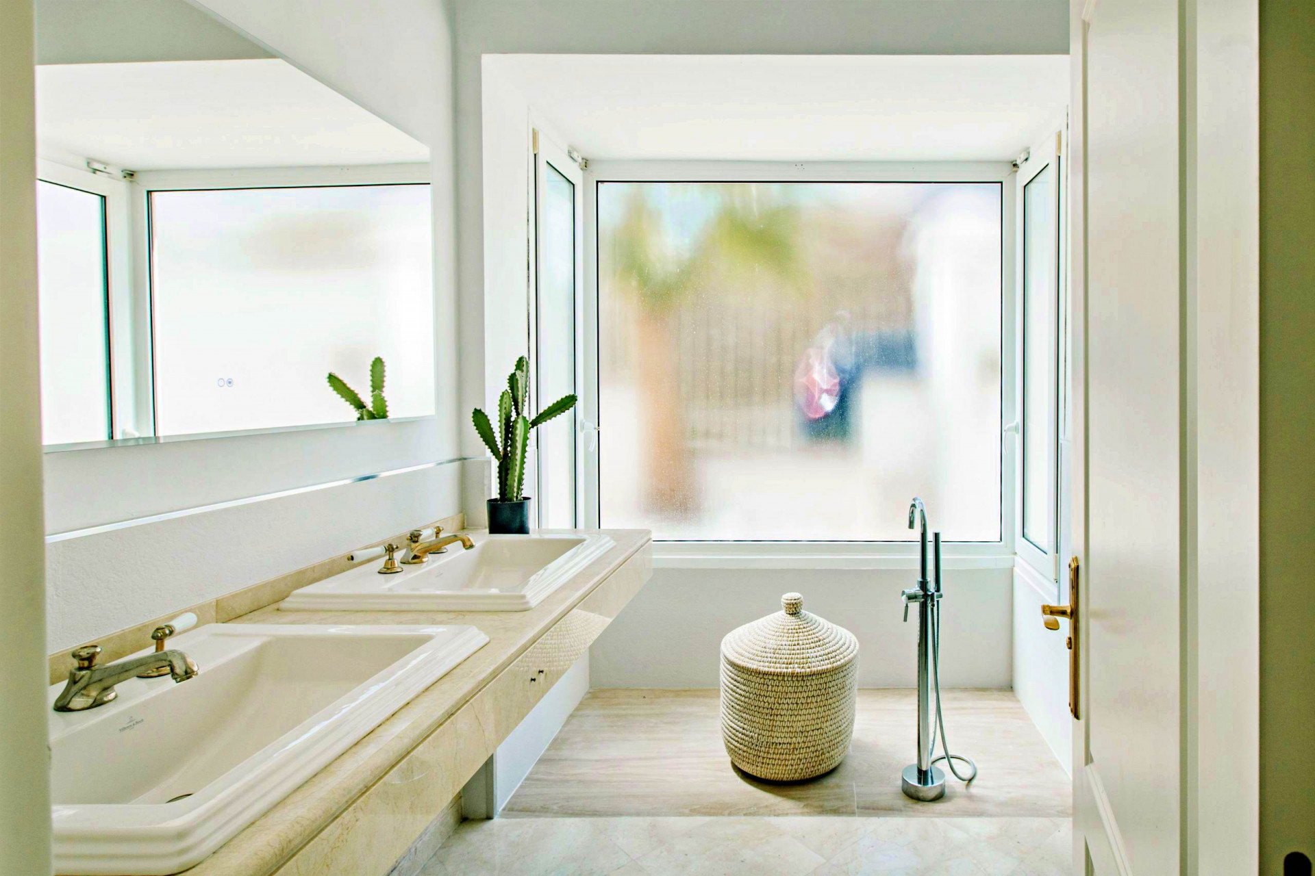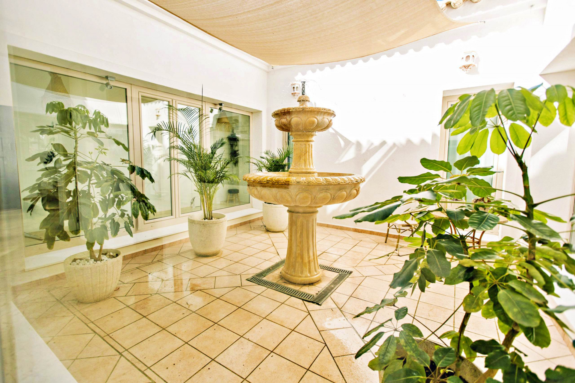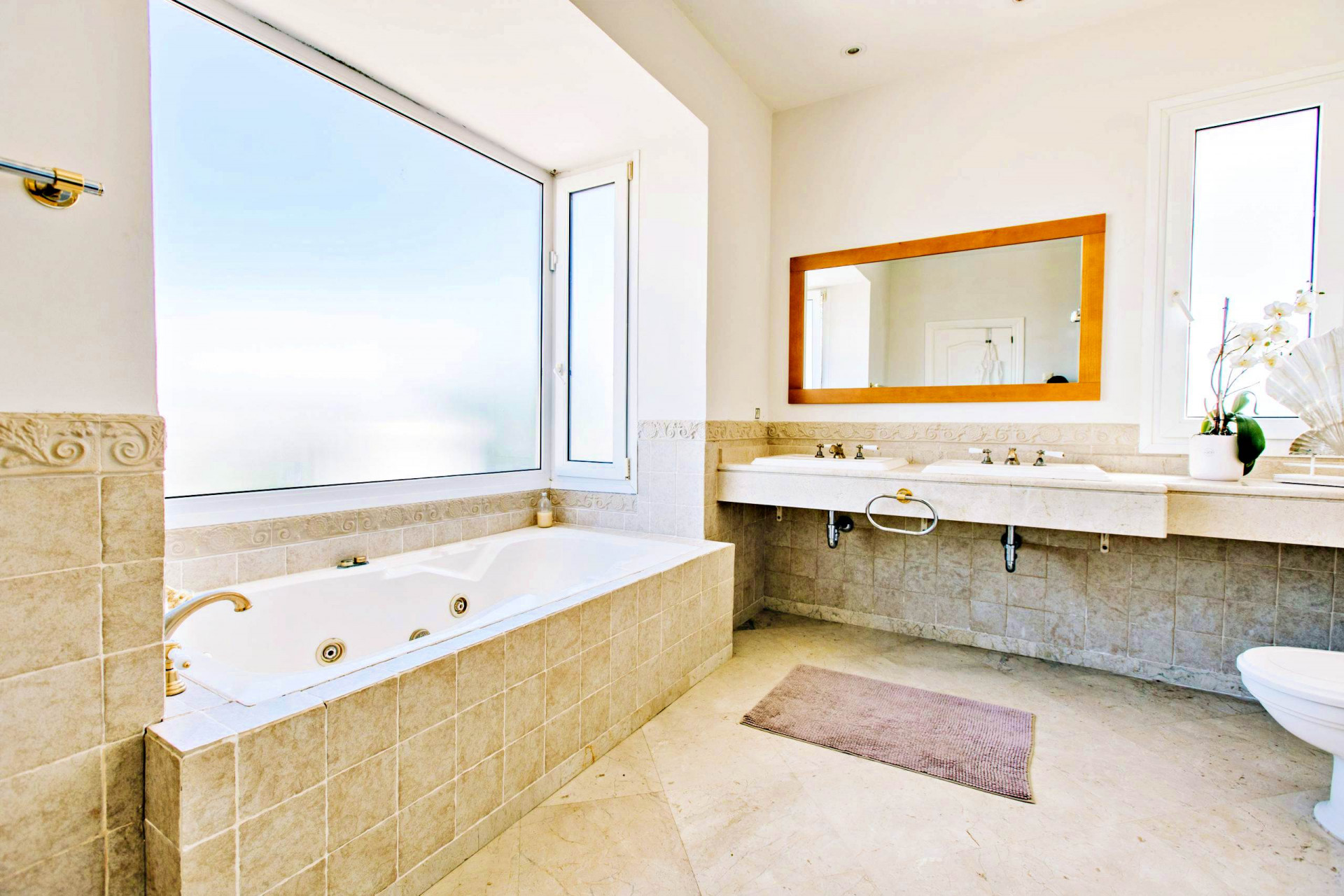 Villan har fyra badrum, en extra gästtoalett och en genomtänkt designad layout som inkluderar en separat gästlägenhet, idealisk för besökare eller utökad familj. Det fullt utrustade köket kompletteras med ett dedikerat matsal, ett tvättrum och ett förvaringsrum, catering till alla praktiska behov. Moderna bekvämligheter som luftkonditionering, satellit-TV, fiberoptiskt internet och Wi-Fi är sömlöst integrerade i hela fastigheten.