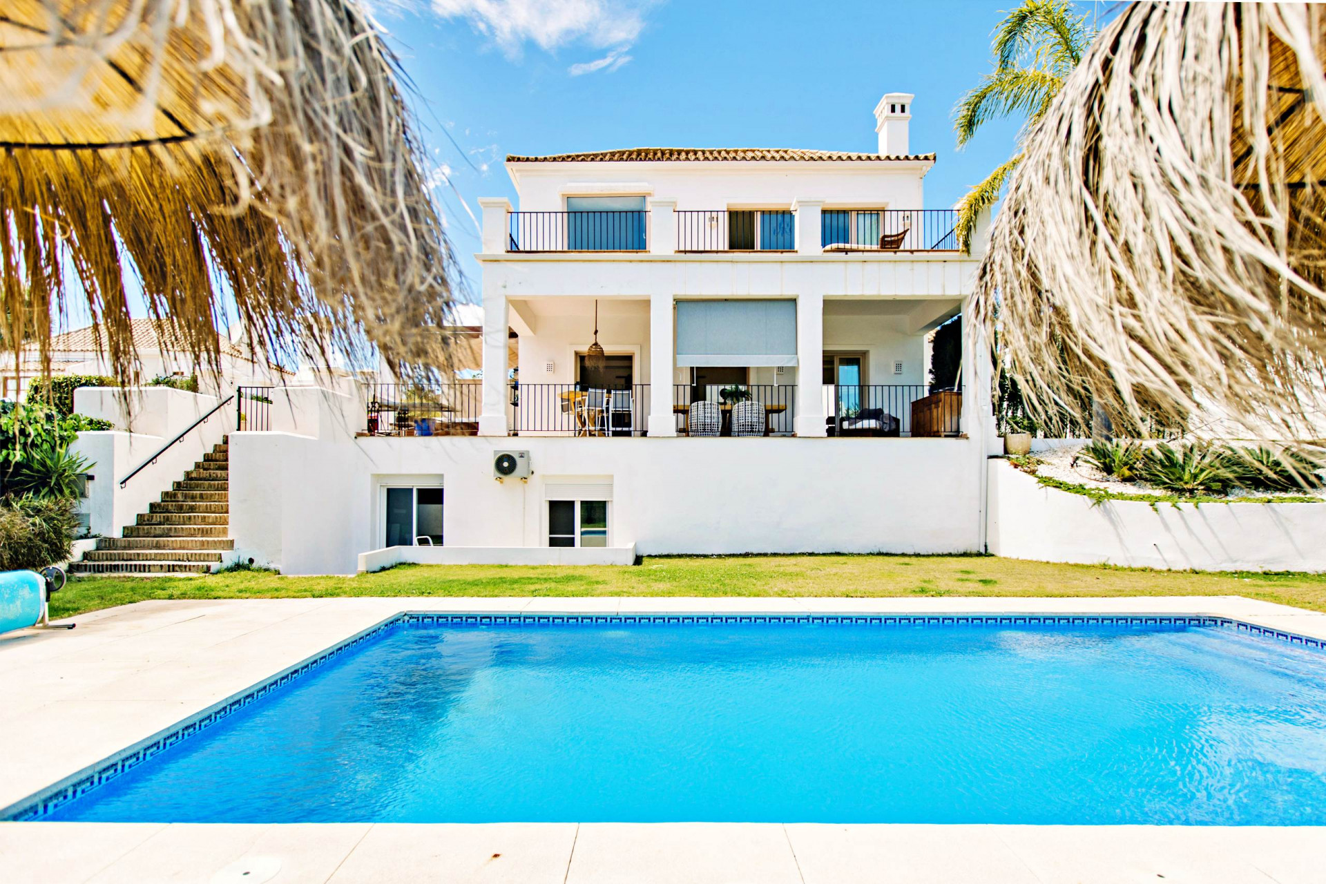Denna imponerande fem sovrum villa ligger inom den prestigefyllda La Resina Golf området i Estepona East, Malaga. Beläget på en generös tomt på 998m2, erbjuder fastigheten ett byggt område på 407m2 och en rymlig terrass på 199m2, vilket ger gott om utrymme för bekväm familjeliv och underhållande. Villan ligger inom ett gated community, vilket garanterar integritet och säkerhet, samtidigt som det är bekvämt nära bekvämligheter, transportförbindelser, affärer, skolor och det livliga centrum.