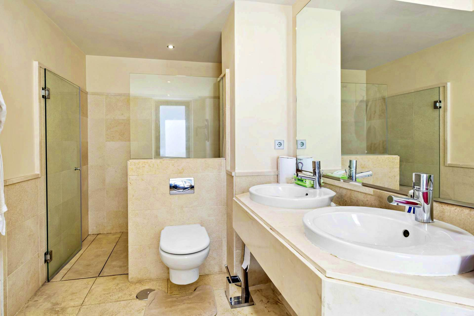 Två gäst sovrum, en svit och en med ett separat badrum. Separat gästtoalett.