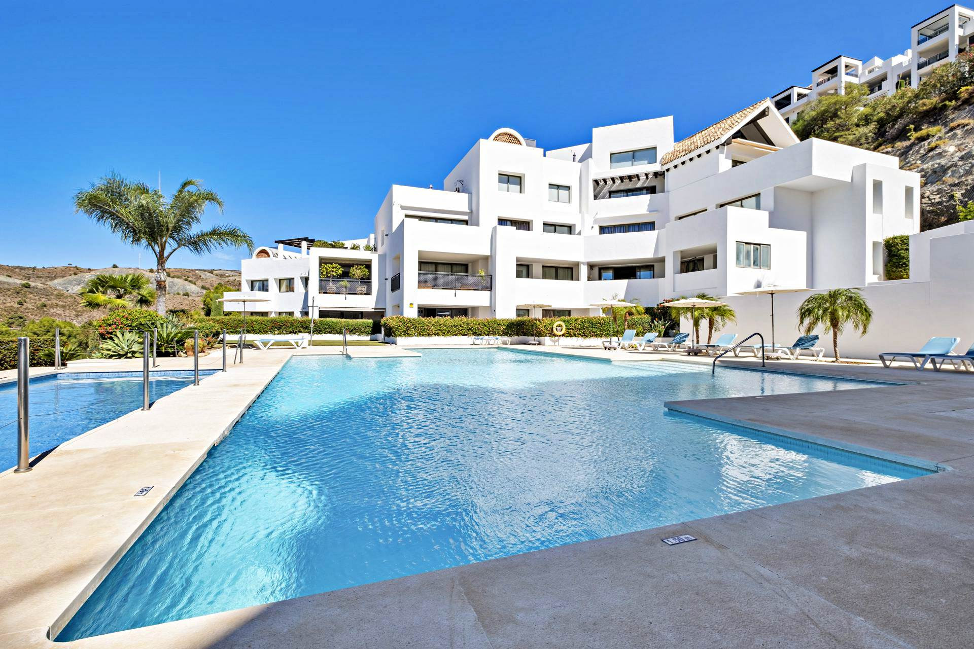 Fantastisk duplex takvåning ligger i den prestigefyllda Tee-5 bostadskomplex, inom Los Flamingos Golf Resort och 5-stjärniga Villa Padierna Hotel.