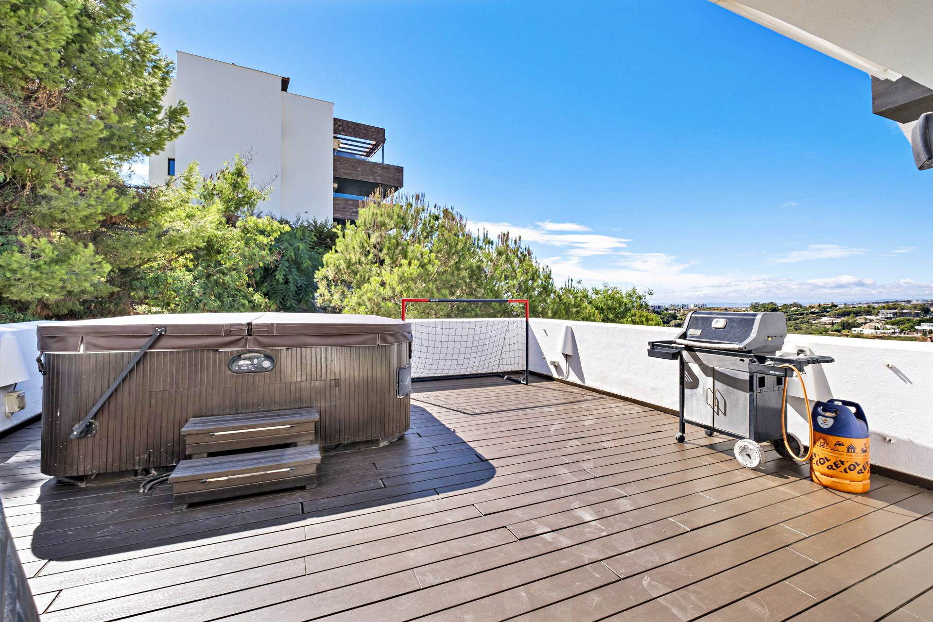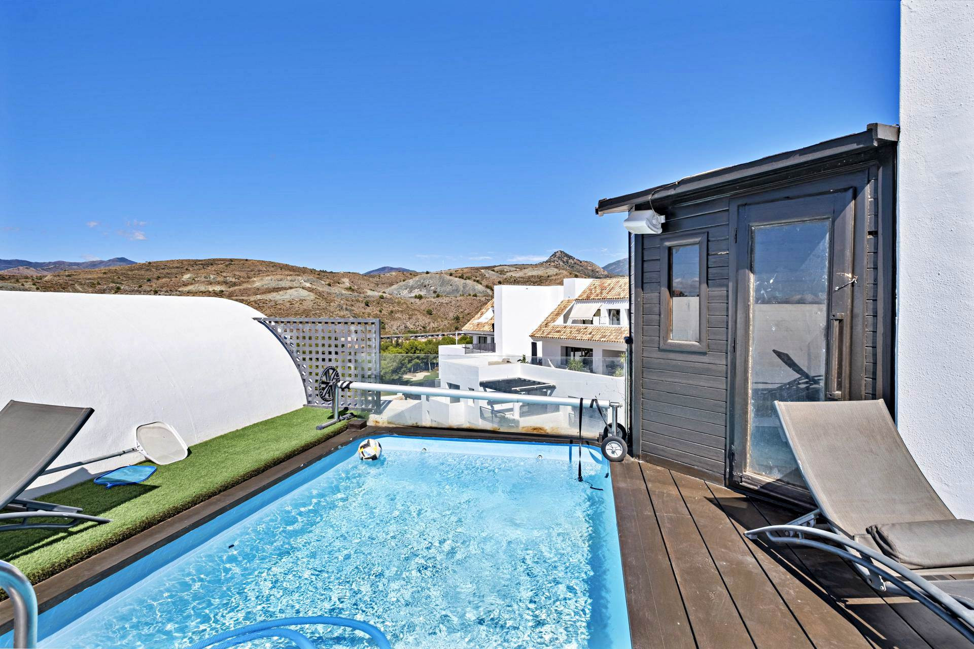Takterrass med privat pool och bastu.